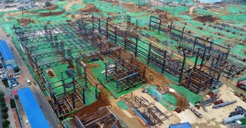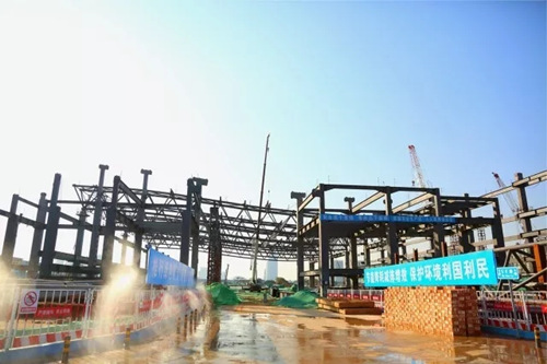 位于項(xiàng)目最南側(cè),最先開工的五號展館主體鋼結(jié)構(gòu)已基本完成。