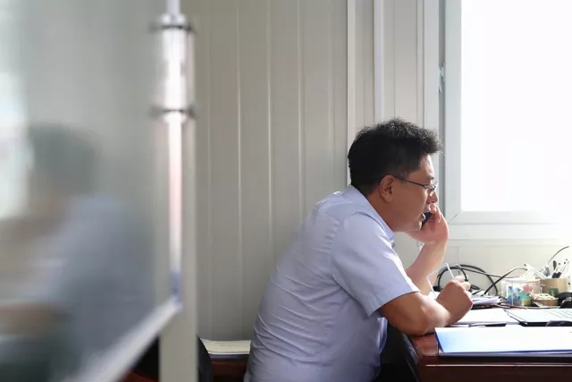 8:50濟南齊魯黃河大橋建設指揮部,我們如約見到了趙世超。一進入項目部“板房”辦公室,他就立馬打電話安排起了今天的工作,這種工作狀態,早已是他熟悉的工作節奏。從2001年畢業開始,趙世超就一直住板房、跟工程,有著17年項目一線工作經驗的他,是建設一線一名結結實實的“老將”。
