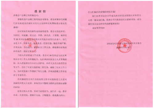 本次疫情防控志愿服務隊由集團所屬的濟南金曰、金宇公司48名干部職工組成,其中42名執勤人員,6名后勤保障人員。全體隊員認真貫徹落實疫情防控“四個百分百”要求,嚴格執行“十個一律”規定,堅持文明執勤、規范執勤、用心執勤,全心全意服務社區,一心一意決勝疫情,竭力鞏固疫情防控形勢持續向好態勢。