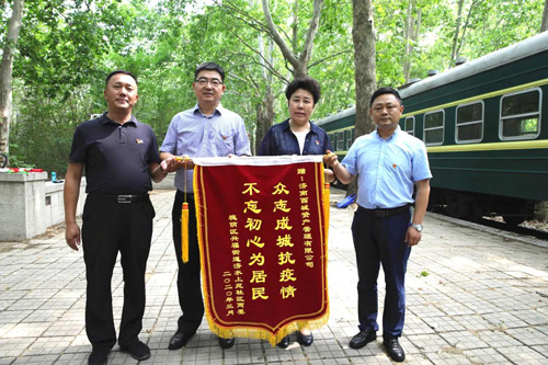 為感謝資產(chǎn)公司在疫情防控工作中對(duì)濟(jì)水上苑社區(qū)的大力幫助,社區(qū)書(shū)記葛榮劍向黨總支書(shū)記陳向勤贈(zèng)送了錦旗。這面寫(xiě)著“眾志成城抗疫情、不忘初心為居民”的錦旗,鞭策資產(chǎn)公司繼續(xù)踐行為民服務(wù)、守護(hù)國(guó)有資產(chǎn)的工作宗旨。