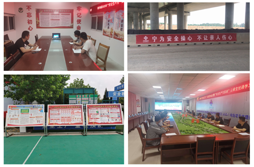 公司在各施工現場及項目部駐地懸掛安全生產月宣傳標語,制作安全生產宣傳展板。為安全生產月營造了濃厚的活動氛圍。