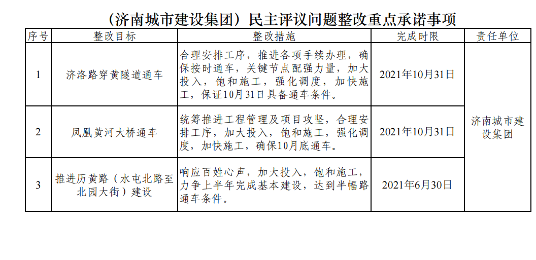 (濟(jì)南城市建設(shè)集團(tuán))民主評(píng)議問(wèn)題整改重點(diǎn)承諾事項(xiàng)
