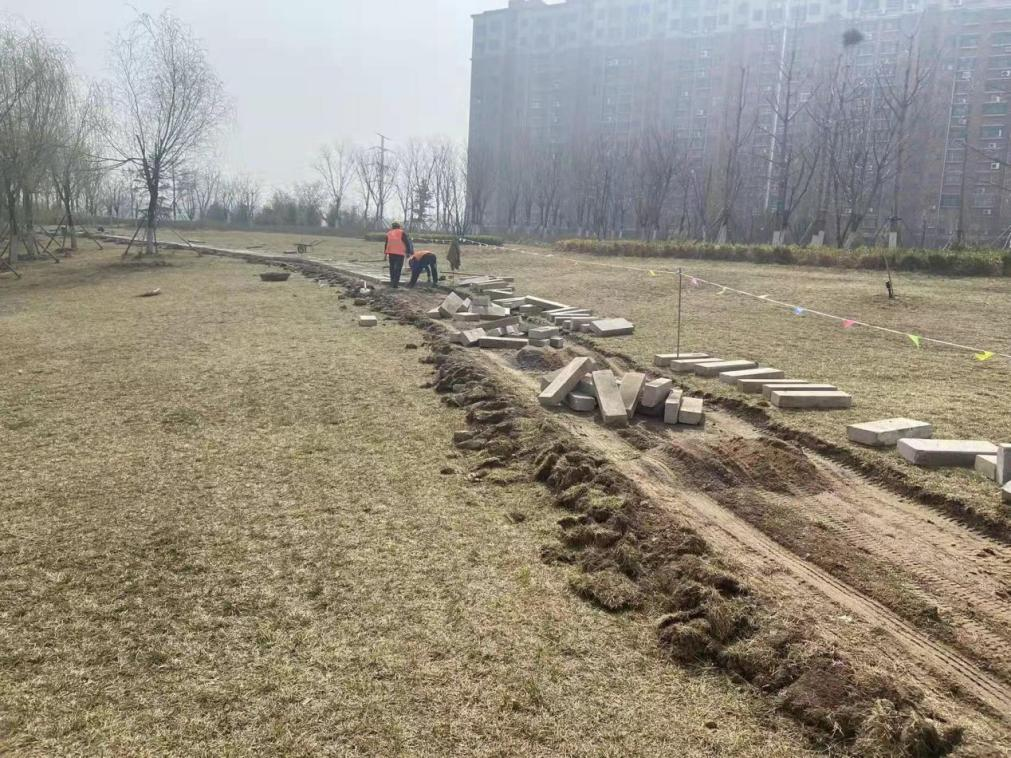 為進(jìn)一步提升市民游園體驗(yàn),集團(tuán)工程二部在華山濕地公園內(nèi)增設(shè)汀步道路,連通園區(qū)與光華大道。此次施工從節(jié)約成本和滿足功能需求角度出發(fā),使用片區(qū)原有石材,在公園東南區(qū)域鋪設(shè)汀步石640米,保證了公園綠地的完整和美觀,兼顧了市民通行游玩的便利。