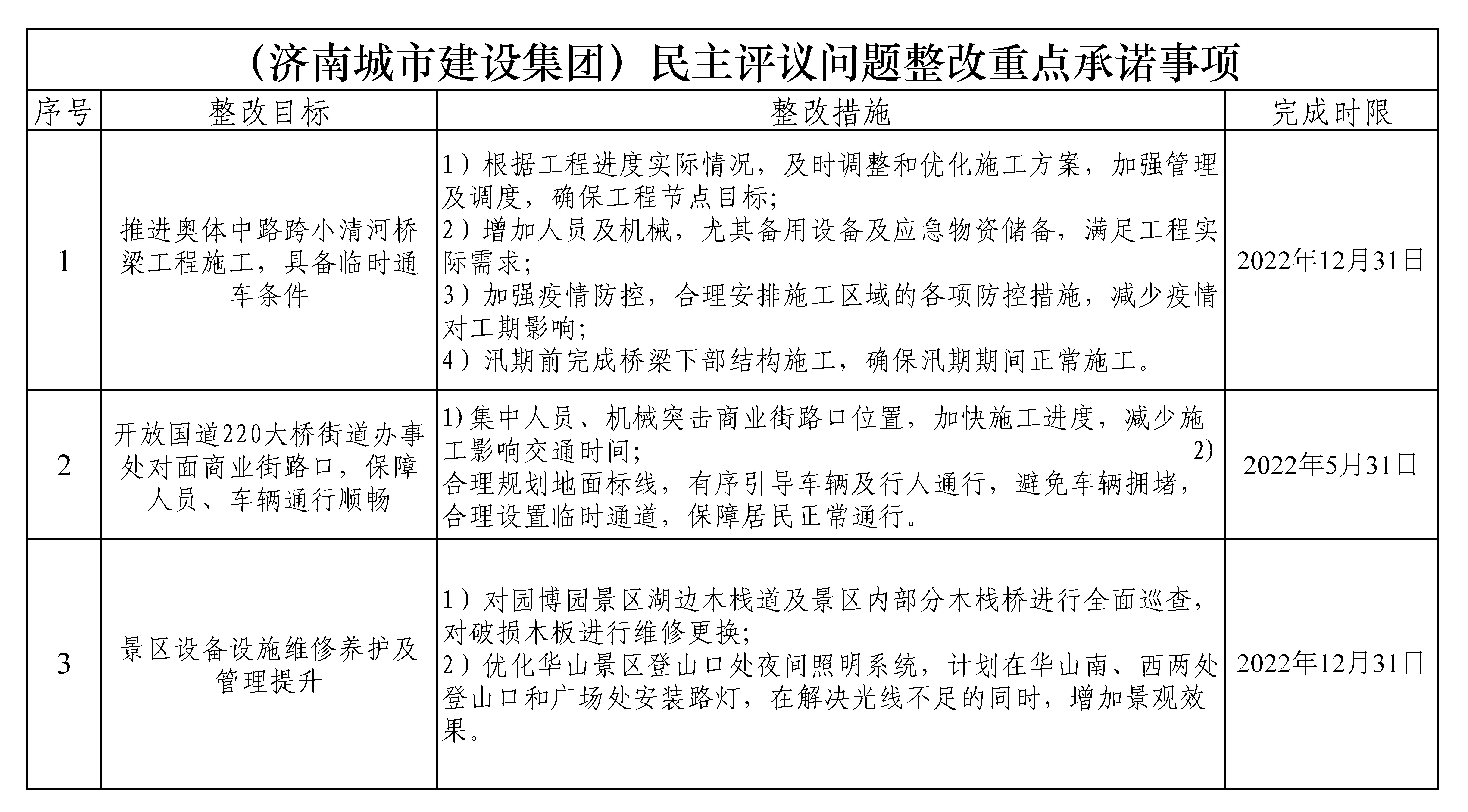 (濟南城市建設集團)民主評議問題整改重點承諾事項