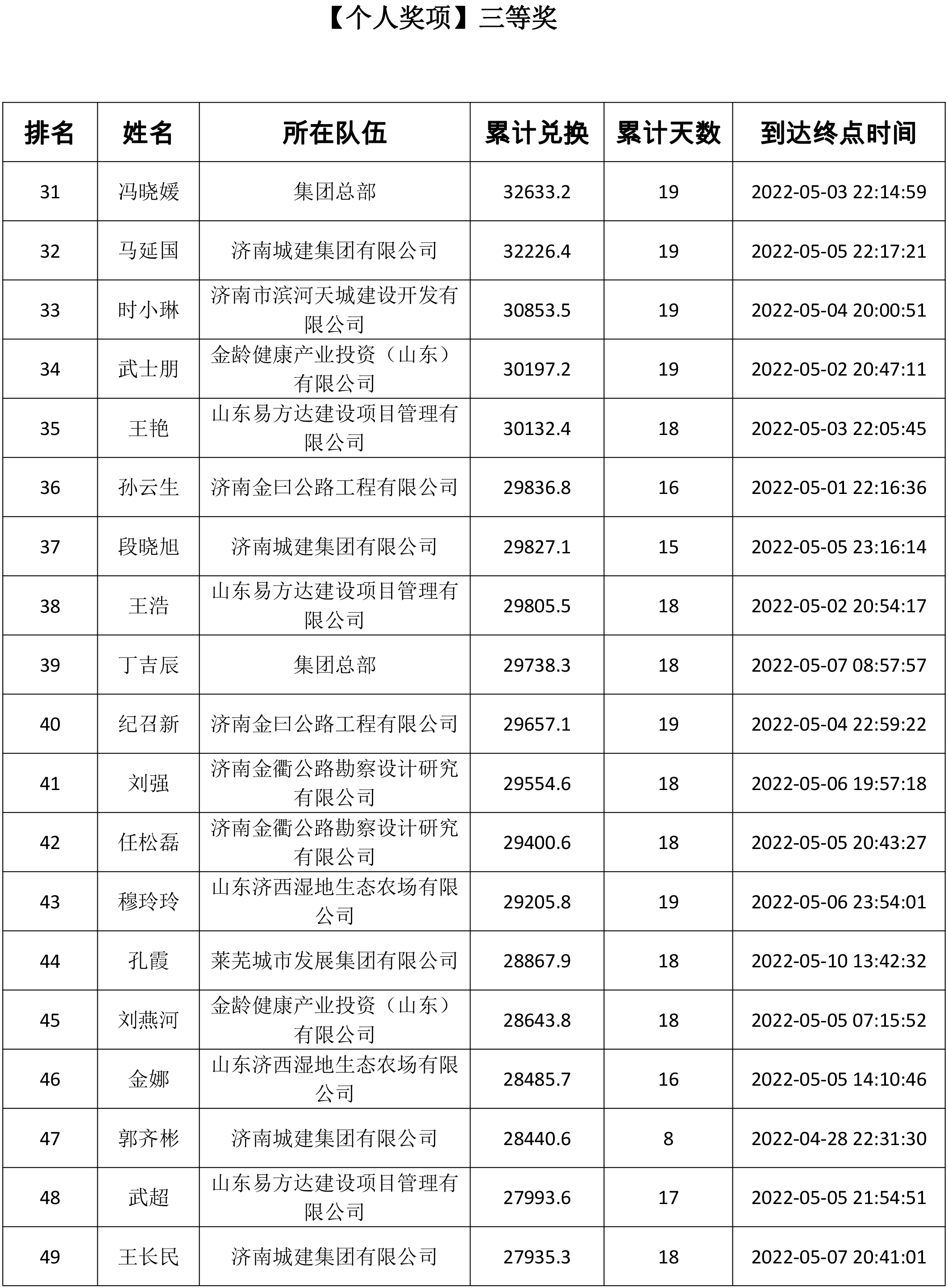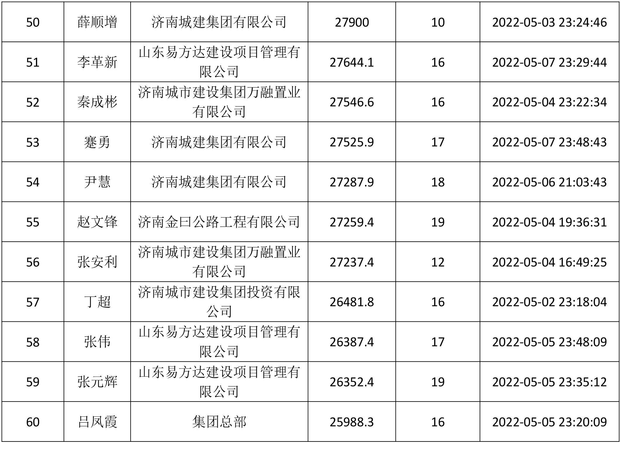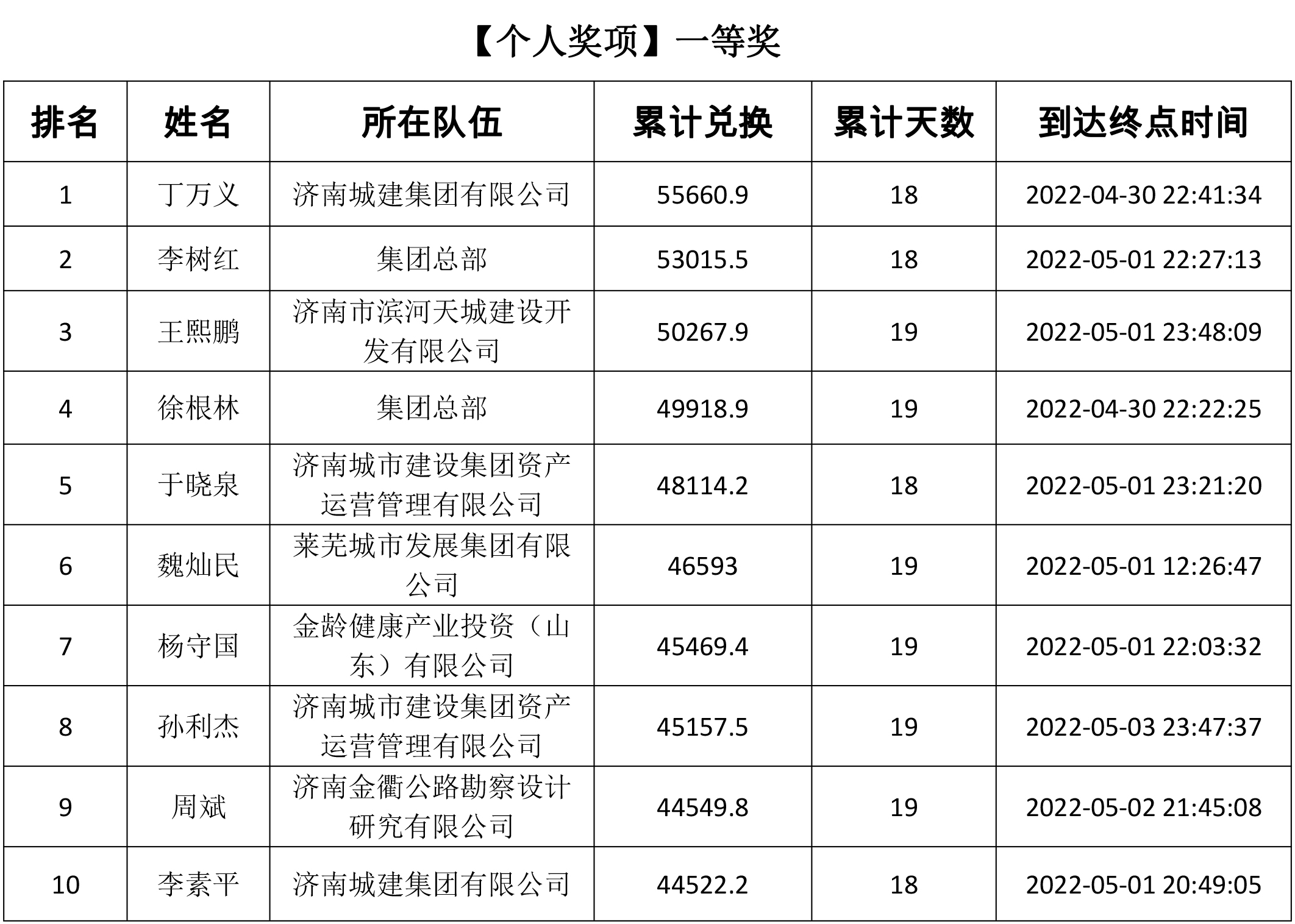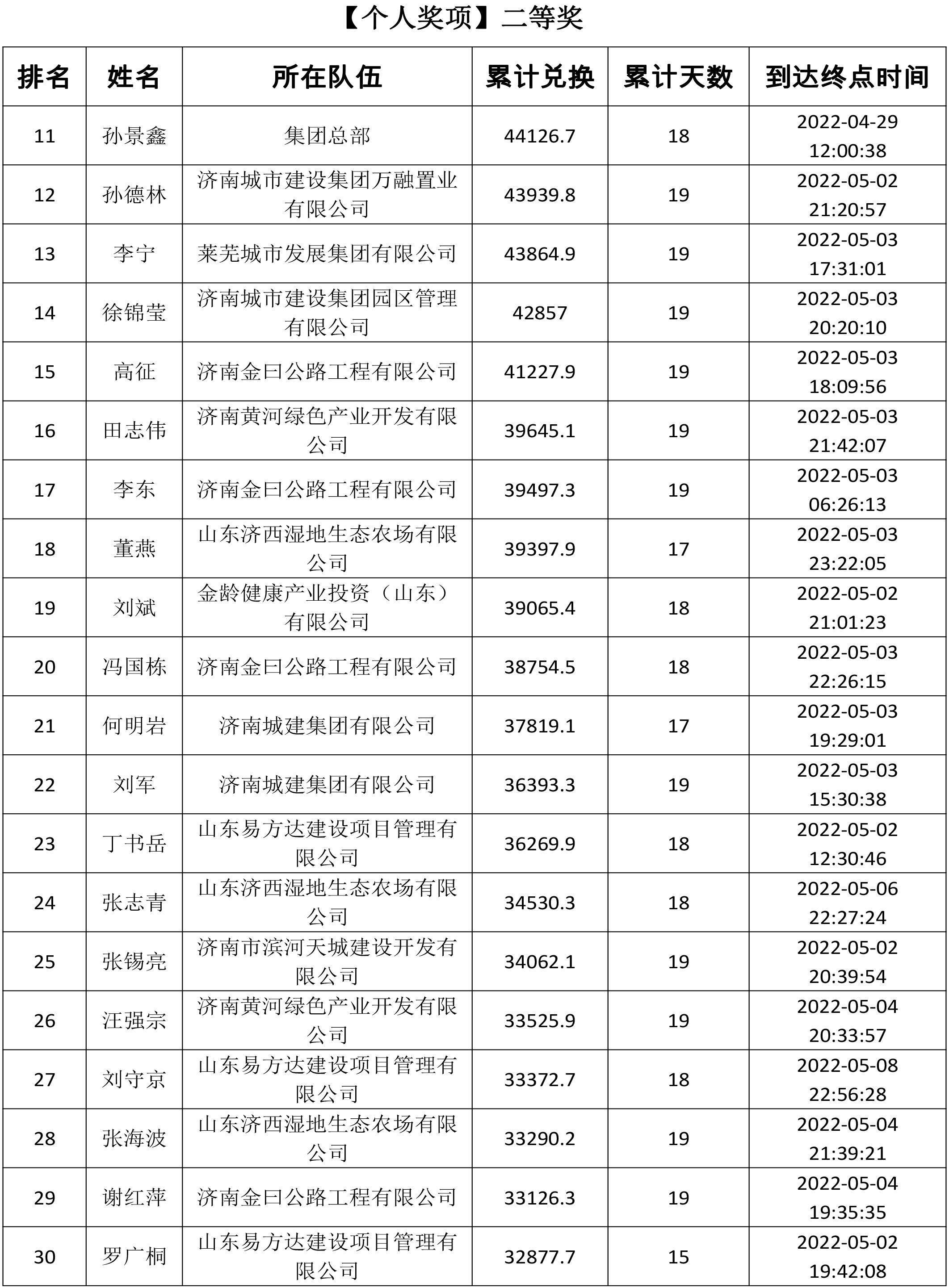 由共青團(tuán)濟南城市建設(shè)集團(tuán)有限公司委員會主辦,共青團(tuán)濟南金曰公路工程有限公司委員會、濟南新城文化傳媒有限公司承辦的“青春有夢 建設(shè)無疆”——職工線上健步走活動于5月13日正式落下帷幕。此次活動共持續(xù)19天,參與人數(shù)達(dá)1716人。