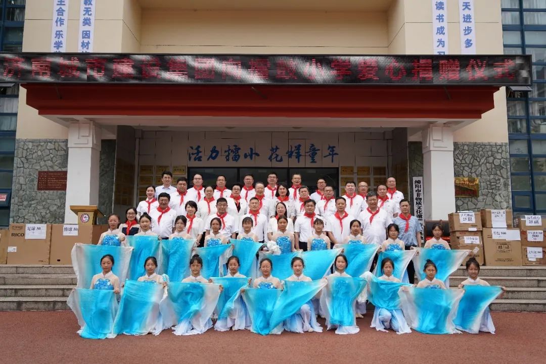 在擂鼓鎮(zhèn)小學(xué),集團(tuán)向?qū)W校捐贈(zèng)了學(xué)習(xí)用品及辦公用品,擂鼓鎮(zhèn)向集團(tuán)贈(zèng)送錦旗,孩子們?yōu)榇蠹耀I(xiàn)上了寓意吉祥美好的羌紅。