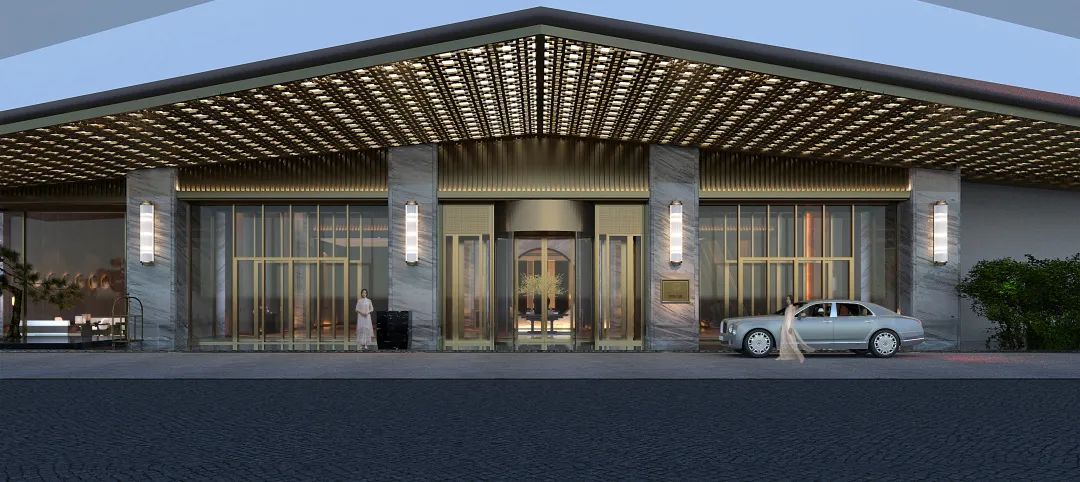宴會(huì)廳天花的設(shè)計(jì)借鑒宋式屋架結(jié)構(gòu),通過(guò)現(xiàn)代設(shè)計(jì)手法進(jìn)行簡(jiǎn)化概括形成符合現(xiàn)代人審美的造型裝置藝術(shù)。