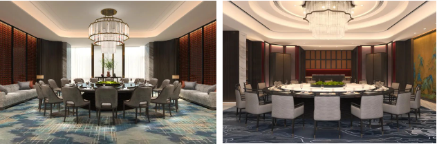 項(xiàng)目將宋代雅致美學(xué)融入酒店裝飾設(shè)計(jì),分別賦予前廳、餐飲區(qū)、宴會(huì)廳以“云起”“云深”“云上”“云歸”之意,復(fù)刻世人追慕的宋人閑雅生活。