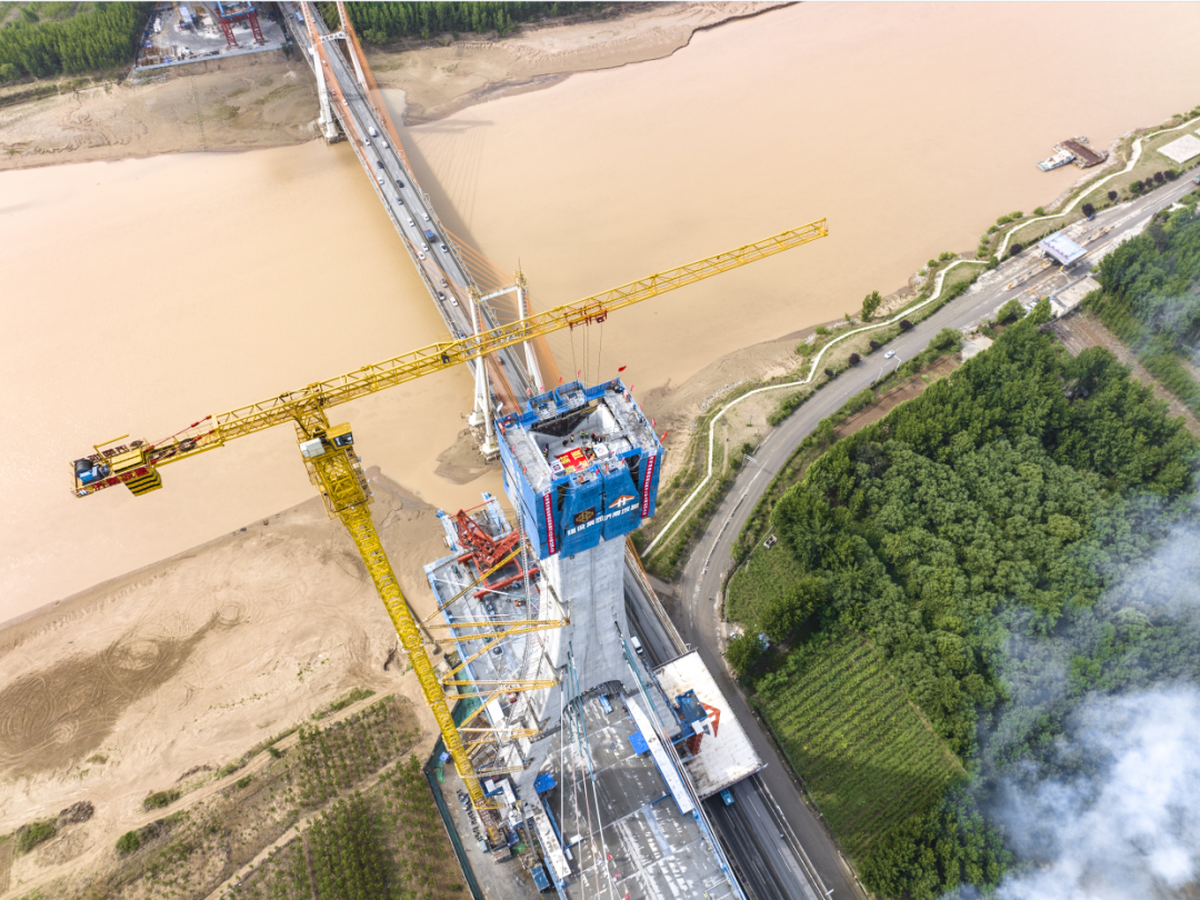 由濟(jì)南城市建設(shè)集團(tuán)投資建設(shè),建設(shè)集團(tuán)所屬濟(jì)南城建集團(tuán)公司參與承建的G104京嵐線(xiàn)濟(jì)南黃河公路大橋擴(kuò)建工程主橋?yàn)殡p塔雙索面公軌兩用鋼桁梁斜拉橋,主跨488米,是黃河上在建最大跨徑公軌兩用斜拉橋。主橋索塔高168.6米,寶瓶形構(gòu)造,造型新穎、施工難度大、技術(shù)要求高。項(xiàng)目部嚴(yán)格按照住建部、省、市危險(xiǎn)性較大的分部分項(xiàng)工程安全管理規(guī)定、危險(xiǎn)性較大的分部分項(xiàng)工程專(zhuān)項(xiàng)施工方案編制指南及相關(guān)要求,成立技術(shù)創(chuàng)新小組、施工部署方案策劃評(píng)審領(lǐng)導(dǎo)小組等組織機(jī)構(gòu),充分調(diào)動(dòng)技術(shù)人員積極性、創(chuàng)造性,編制了《索塔專(zhuān)項(xiàng)施工方案》,并成功應(yīng)用于本工程索塔施工中,達(dá)到安全生產(chǎn)、降本增效的目的,為推動(dòng)項(xiàng)目安全有序建設(shè)蓄勢(shì)賦能。