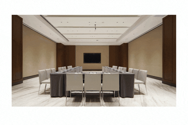 室內宴會及會議區域總面積超5000平方米,酒店內最大無柱式多功能宴會廳面積達1100平方米,能夠承接60桌宴會及千人會議,配備P2.5高清LED顯示屏。