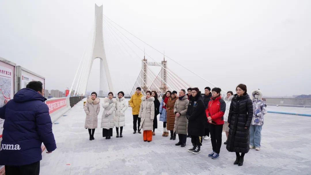 活動中,濟南廣電的播音員主持人實地參觀了由建設集團投資建設的G104京嵐線濟南黃河公路大橋項目建設現場,了解項目建設情況,感受城市發展之勢。