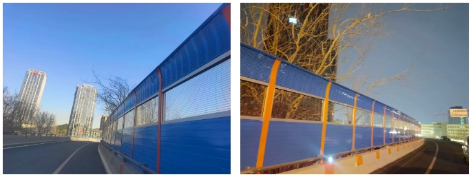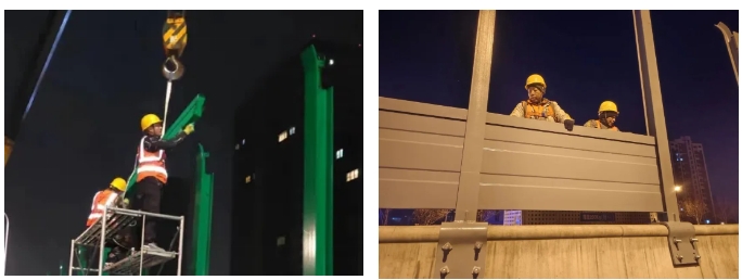 2023年濟南市聲屏障吸音降噪環保工程由建設集團所屬山東金宇信息科技集團有限公司承建,工程設計總長8478.06米,涉及工業北高架橋、北園高架橋、二環西高架橋、二環南高架橋、緯六路高架橋、燕山立交橋、白馬山隧道等路段。施工內容包含2.233m、2.5m、2.683m高直弧形聲屏障以及3.5m高直弧形聲屏障、3.5m高頂部帶吸聲筒形聲屏障,部分聲屏障基礎采用騎馬鋼板形式、部分聲屏障基礎采用植入化學錨栓形式。該項目于2023年8月15日開工,歷時214天,于2024年3月15日竣工。