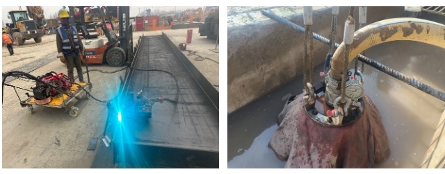 航天大道穿黃隧道工程(I期)包括隧道東岸始發井及明挖段圍護結構采用地連墻+內支撐形式,共計地連墻87幅,使用工字鋼3578米。項目部精心策劃,通過方案比選,確定使用焊接機器人進行施工,較傳統人工焊接工效提升3倍,費用降低93%。
