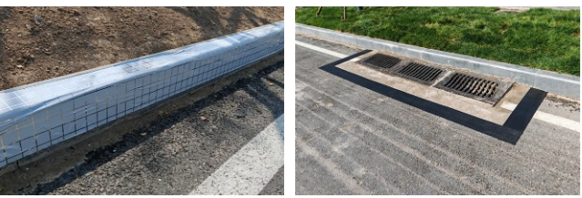 在鵲華西路瀝青攤鋪過程中,應用“瀝青防裂貼”,在瀝青施工縫處采用與設計同厚度的木條模板,保證面層厚度、壓實度,省去切縫工序,保證瀝青搭接平順;在路緣石施工中使用“路緣石防油貼”減少瀝青污染,保持道路整體的美觀和使用壽命,減少維修成本。