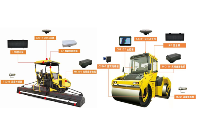 城建集團公司創新應用的“數字化、智能化生產監控系統”,通過GNSS天線、AP智能組網終端、TS溫度傳感器等外置設備,將攤鋪機與壓路機進行組網,同步采集攤鋪數據,通過LED顯示器實時顯示攤鋪速度、攤鋪溫度、碾壓速度、碾壓溫度等關鍵參數,通過無線信號發射天線,實時上傳數據至終端系統,施工管理人員通過數據把控施工質量,可對質量進行追溯,實現對項目建設質量的精細化把控。