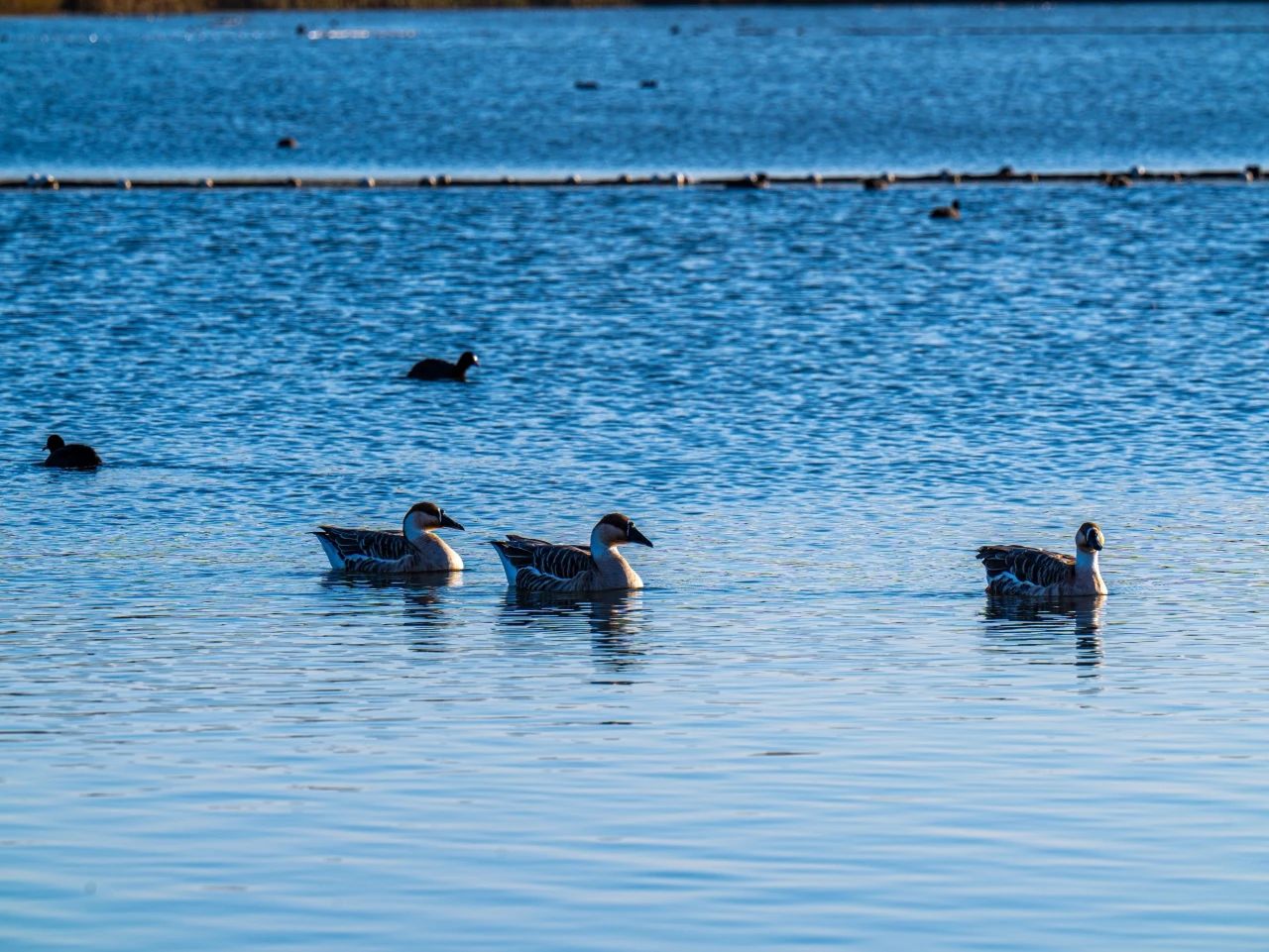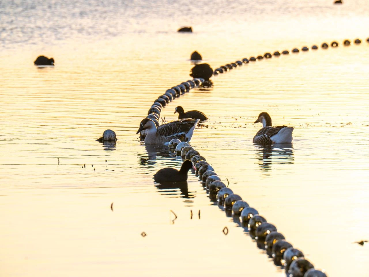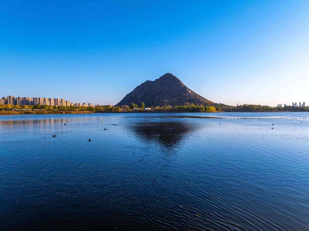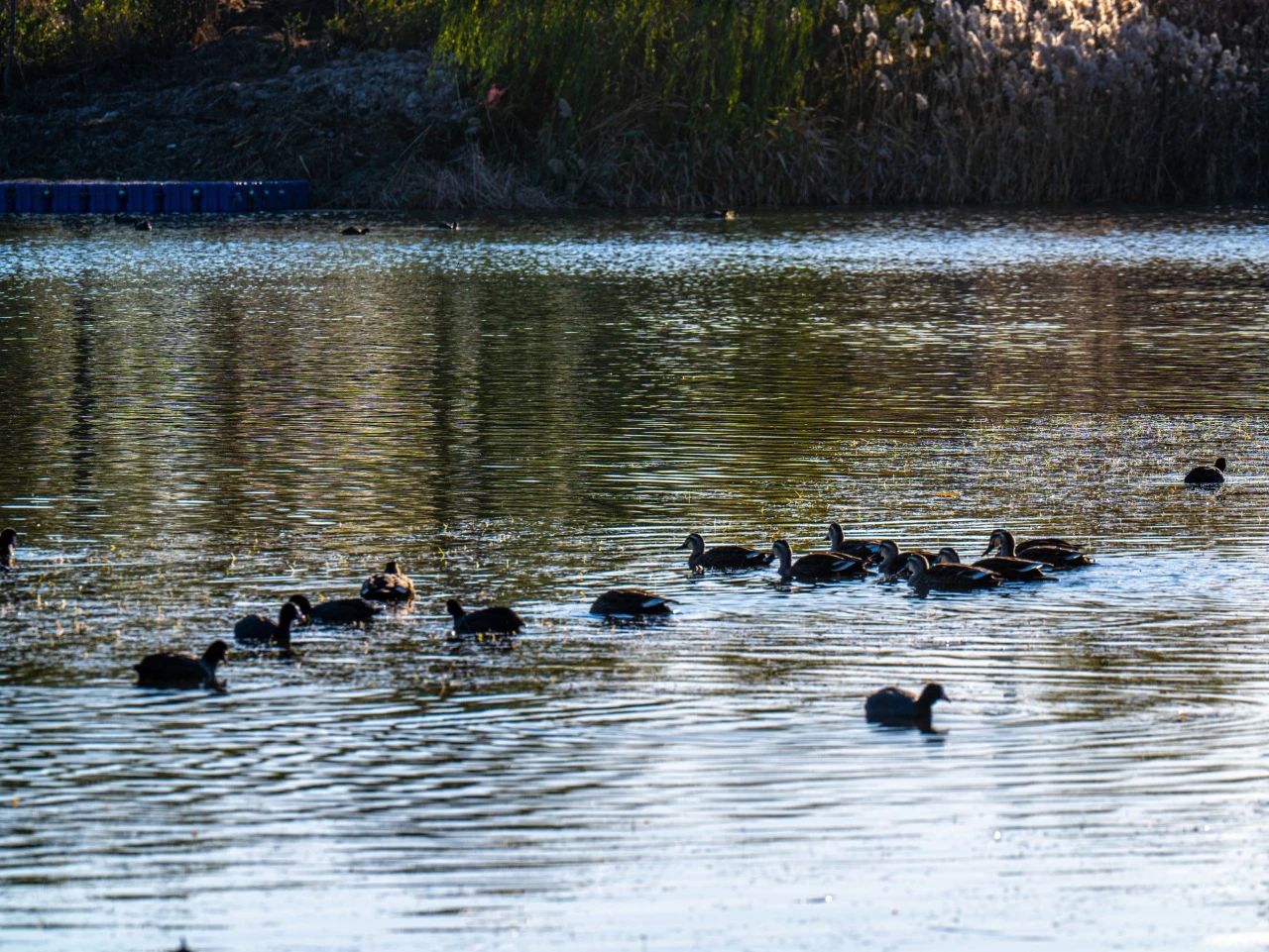 羽翼輕展映寒暉,群鳥嬉戲逐水歸。秋末冬初,上百只國(guó)家二級(jí)保護(hù)動(dòng)物白骨頂雞如約來到濟(jì)南華山景區(qū)棲息,赴冬日的約定。