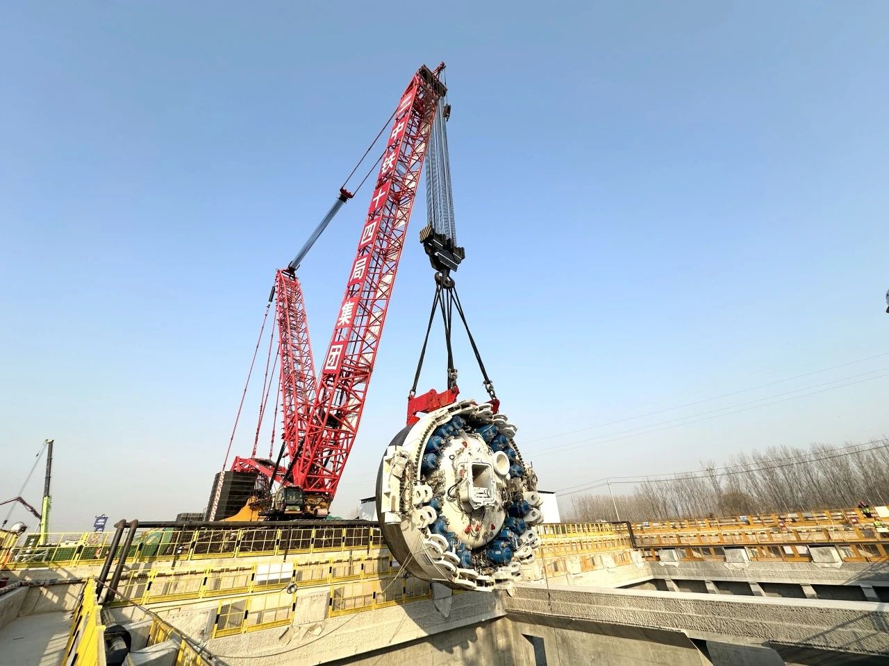 390噸“心臟”就位!濟(jì)南市航天大道穿黃隧道盾構(gòu)機(jī)主驅(qū)動下井